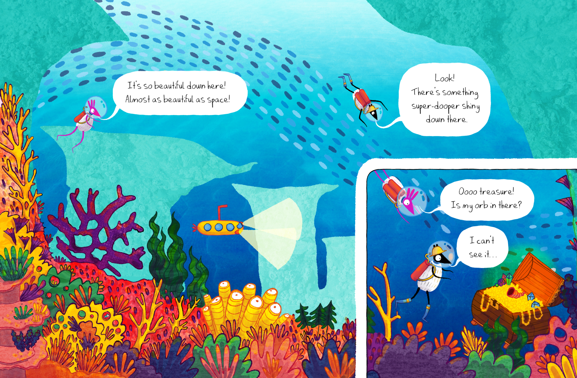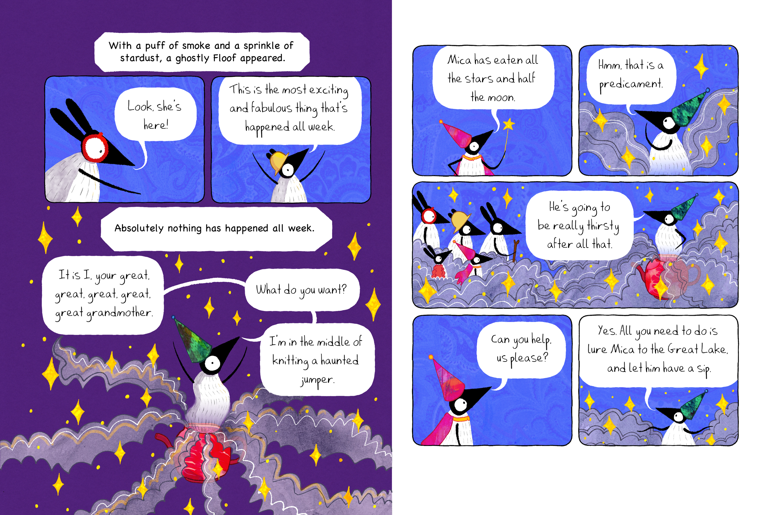 “The Floofs Reach for the Stars” is a 128pg, full colour graphic novel for children Published by Francis Lincoln Children’s Books (Quarto) in April 2025